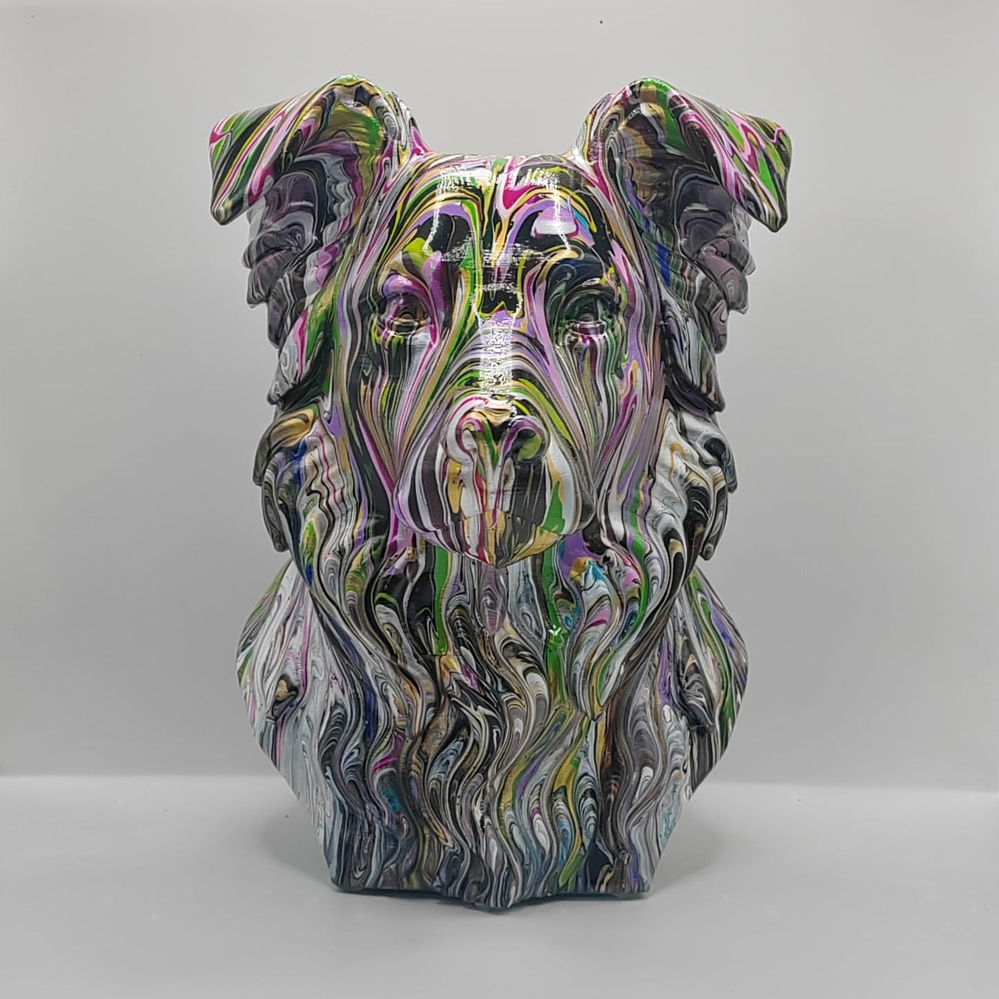 Unleash your creativity with our made-to-order Border Collie Bust! This Border Collie is 20 cm tall standing! - This piece will be made on our live stream. Select your three colours from the list below and lets paint your one-of-a-kind Border Collie dog figure while watching it come to life. Choose your colours, and we’ll paint this during the live session, making it a personal, interactive experience!