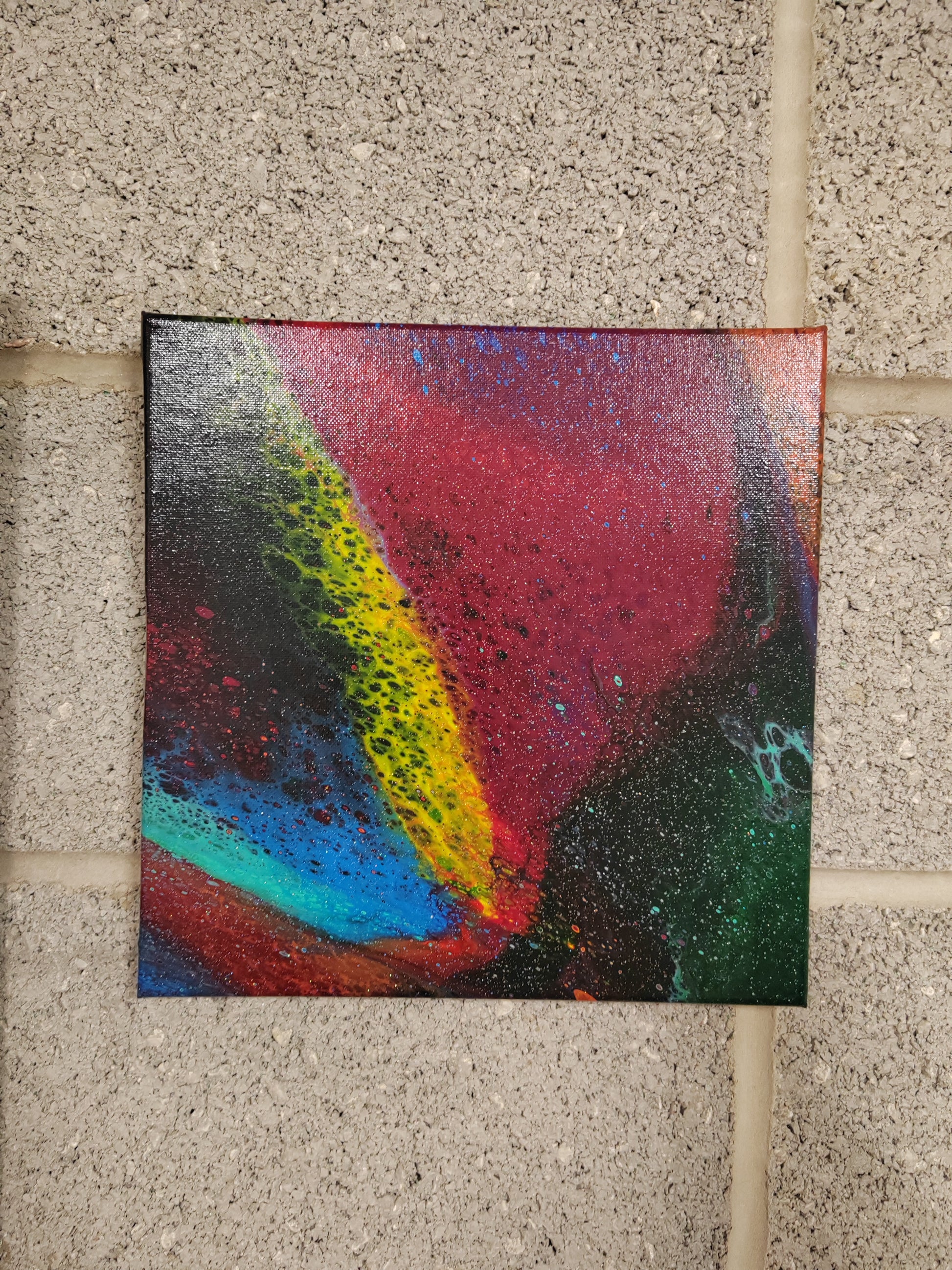 Our canvases are 12 x 12 inch. Your unique painting has been painted on our live stream! We've painted your one-of-a-kind canvas while hubdreds of viewers watched it come to life! Making this canvas truly unique!