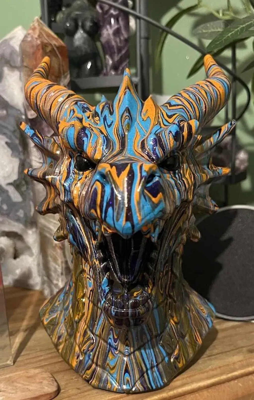 - Hand painted Dragon head sculpture – a durable, high-quality decorative Dragon bust, customised in your chosen colours and painted live.