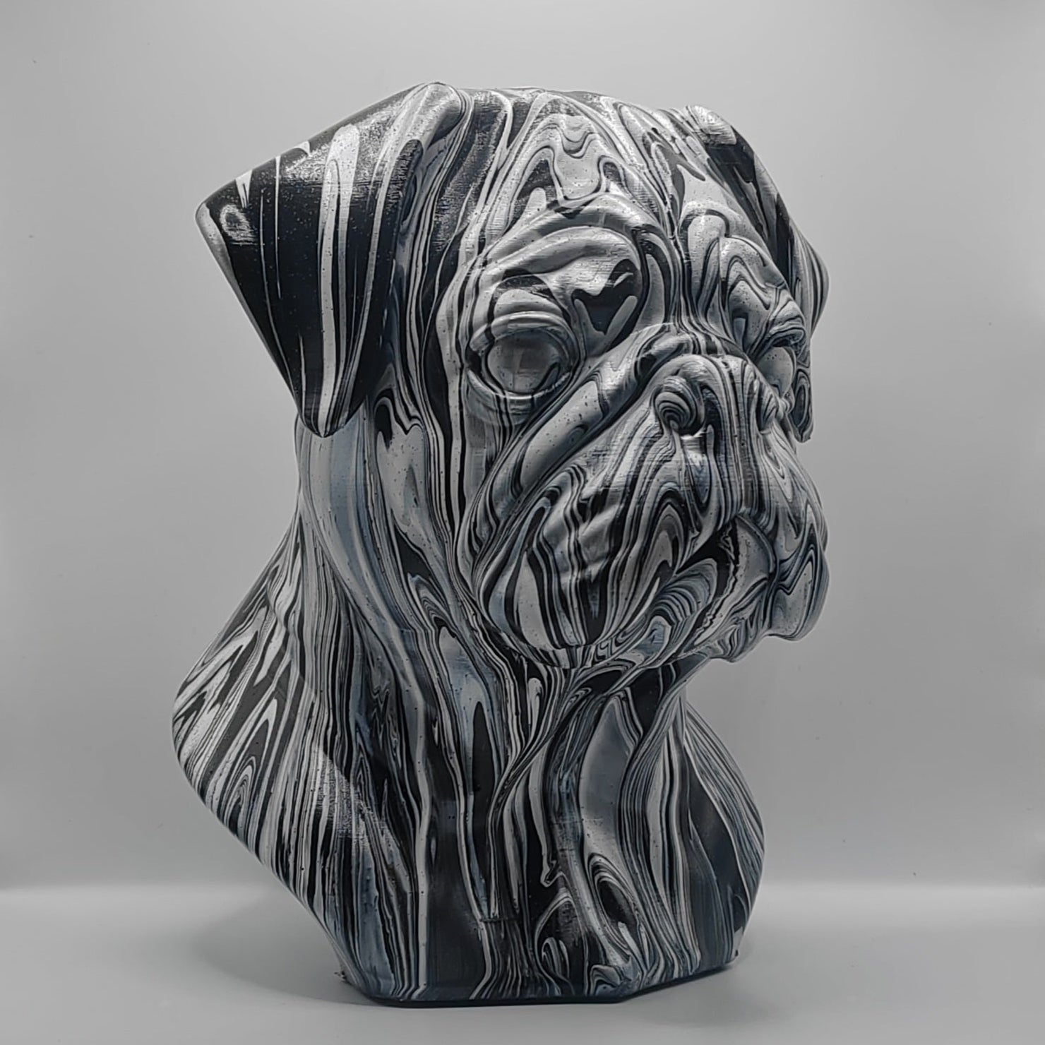 I was unsure whether to order at first,but then I ended up purchasing a Pug bust (My Boy Finn) a Staffy bust (a gift for my sister) & a Skull(well they just look awesome!)Loved the whole experience of choosing my colours & watching Dan paint them all live…Black,Silver,white with Gun Metal Glitter for my Pug,the result was more than I hoped for🥰Very well packaged,tracked & arrived safely in one piece.Love that my Pug bust is the photo on the website!